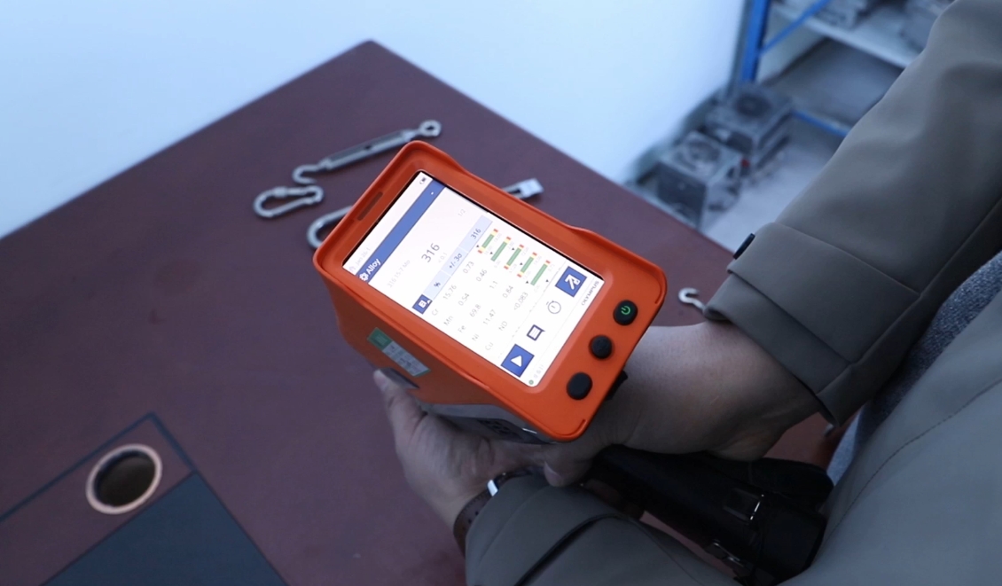 Vykdydami kokybės kontrolę, nerūdijančio plieno jungiamose detalėse mes naudojame rankinį spektrometrą, kad patvirtintume kompoziciją. Šis instrumentas yra neardomas testeris, kurio lydinio laipsnio identifikavimo tikslumas yra 98,7%.