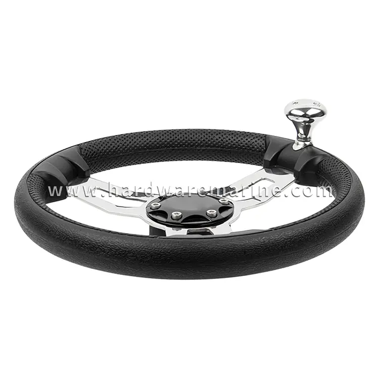 Nerūdijančio plieno PU putplasčio 3 stipinų valties vairas su rankenėle |